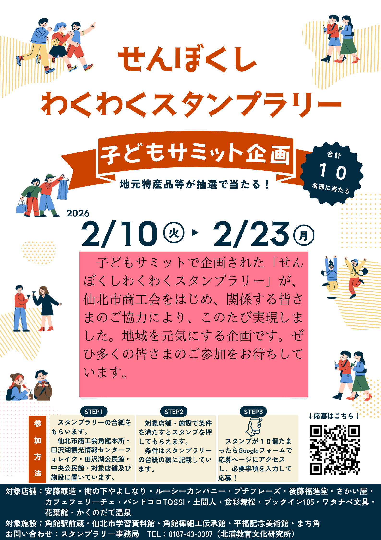 スタンプラリー事務局 TEL:0187-43-3387(北浦教育文化研究所)