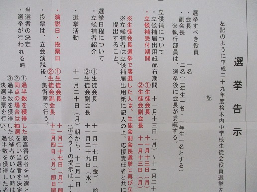 | 2017年11月24日(金) 新生徒会役員選挙 | ||