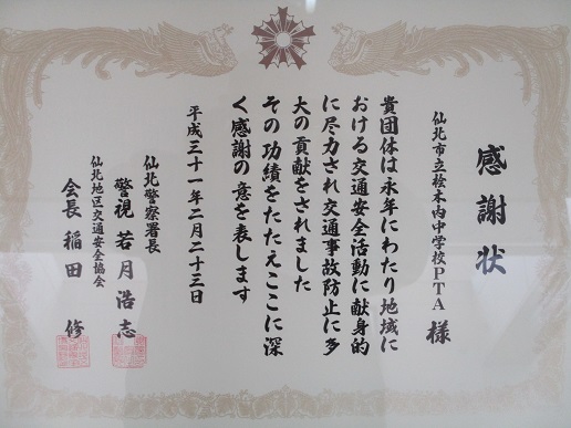 | 2019年3月4日(月) PTA交通安全団体功労賞 | ||