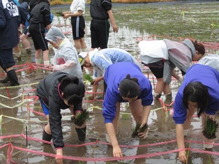 | 2017年6月5日(月) 田んぼアートの田植えに参加しました | ||