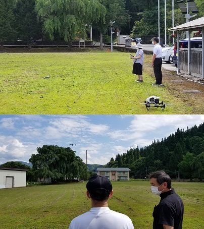 夏休みを利用し、先生方はドローンの操縦研修を実施しました。市内各校にはドローンが整備されており、その活用に向けてのものです。講師を市教育委員会と地元ラジコンクラブの方にお願いしました。約一時間の講習を受け基本的な操縦の仕方をマスターしました。今後、校外での行事等で有効に活用してまいります。