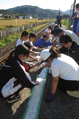 | 2018年9月20日(木) 秋田内陸線の駅ホームの白線引きボランティア | ||