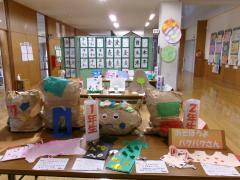 子どもたちの作品を1階プレールームと体育館側壁面に展示しました。絵や立体作品、習字、家庭科の作品など、子どもたちの力作が勢揃いしています。当日は、ステージ発表と併せて、こちらの方もじっくり鑑賞していただければと思います。また、星雪館様のご協力をいただき、「ミズの油炒め」の試食コーナーも設ける予定です。5年生の子どもたちが探究した「郷土料理を受け継いでいきたい」という学習のまとめとして、郷土料理の美味しさを発信します。郷土料理のレシピやパンフレットも準備しますので、楽しみにしていてください。明日は、多くの皆様のご来場をお待ちしております。