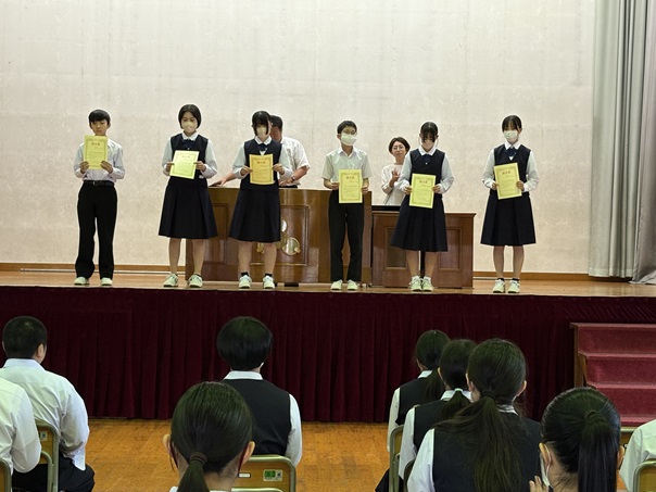 30日(火)賞状伝達式を行いました。各賞に輝いた皆さんに心からおめでとうと言いたいと思います。大きな自信にしながら、これからも確実で実り多い学校生を送ってほしいと思います。