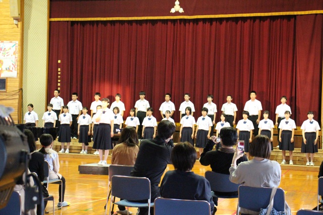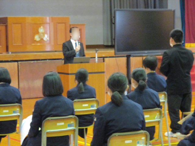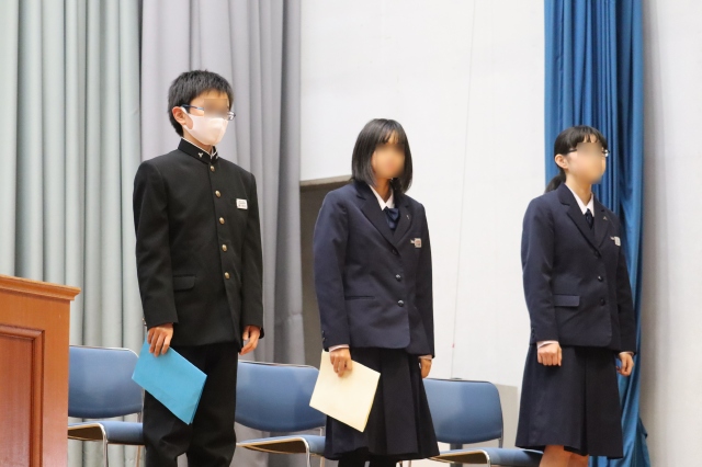 臨時休校や部活動の大会、コンクール中止など、今まで経験したことの無いような半年でした。そんな中でも自分が成長したことやこれからの課題を見つけ、終業式では各学年代表が発表しました。