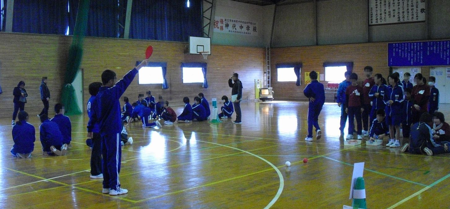 ボッチャは、ヨーロッパで生まれた障がい者のために考案されたスポーツで、パラリンピックの正式種目です。ジャックボール(目標球)と呼ばれる白いボールに、赤・青のそれぞれ6球ずつのボールを投げたり、転がしたり、他のボールに当てたりして、いかに近づけるかを競います。ボッチャを通して、せんぼく校の子供たちと交流を深めることができました。大曲支援学校せんぼく校のみなさん、教職員の皆様、ありがとうございました。