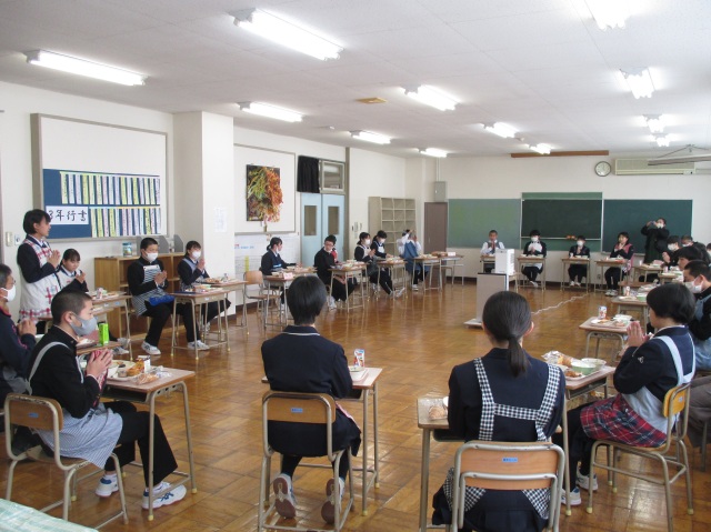 先月行われた3年PTAに続き、1・2年生のPTA授業参観が行われました。5校時が参観授業で、1年生は総合的な学習の時間で11月に行われた盛岡校外学習の発表が行われました。クイズを取り入れるなど工夫を凝らした発表が見られました。本校では数学、英語、理科でテイームテイーチングによる授業が行われていますが、今回2年生の授業はテイームテイーチングによる英語の授業でした。詩を英文で作る課題でしたが、自分で調べたり、友達の英文を参考にしたりしながら真剣に取り組みました。次回のPTAは2月21日実施予定です。日曜日となりますので多くの保護者の皆様にお越しいただきたいと思います。 |