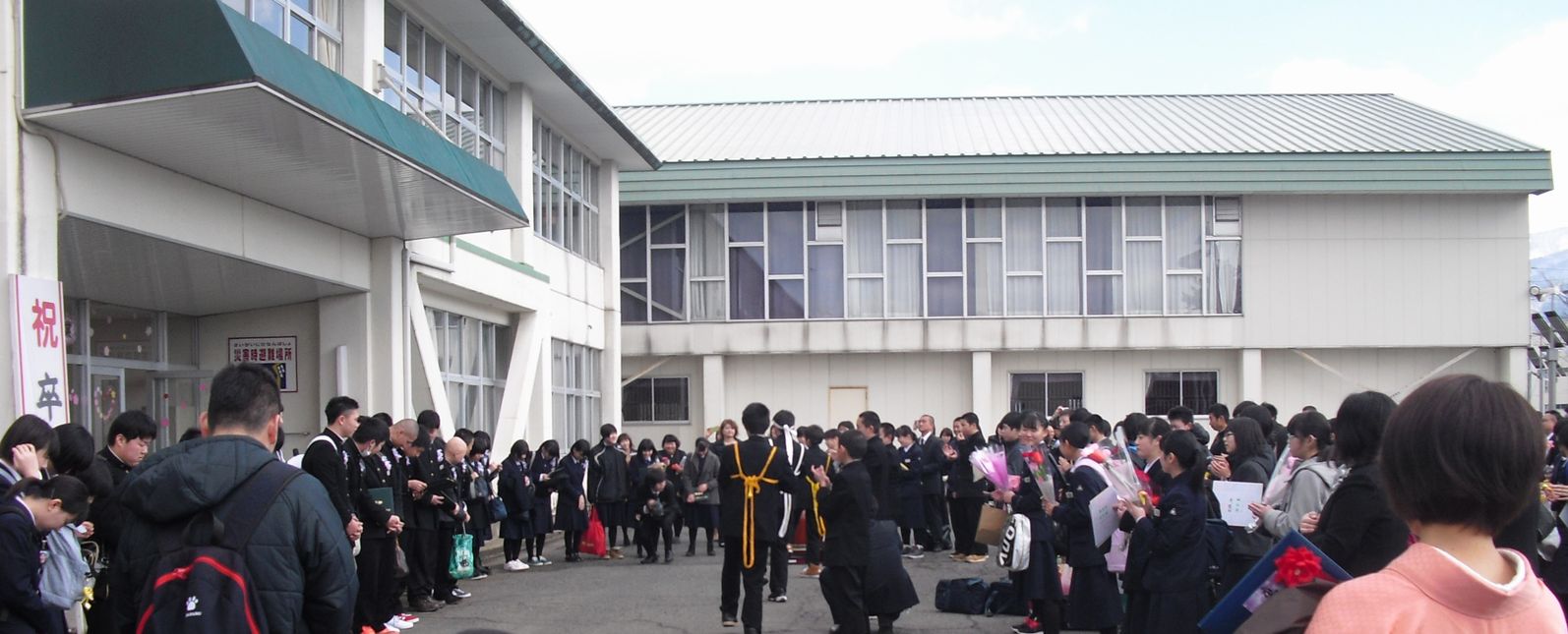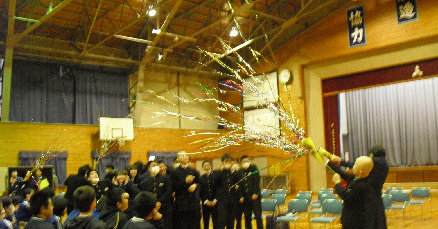 「3年生がいなくなると、とても寂しくなるなぁ」という声があちらこちらから聞こえてくるようになりました。卒業まで今日をいれても後3日。今年も啓翁桜(けいおうざくら)を 卒業式用に御寄贈いただきました。卒業が着々と足音を立てて近づいていることを実感しました。さて、今日は3年生を送る会。昨年度までお世話になった先生方からもお祝いのビデオメッセージが届けられ、3年生が大いに盛り上がりました。本当にありがとうございました。