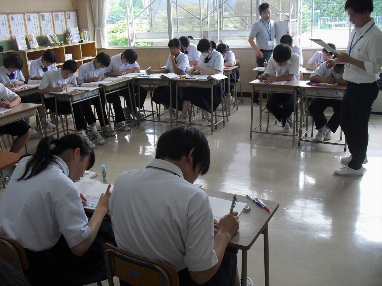 来校して3週目を迎えた教育実習生が2年生の数学を指導しました。難しい連立方程式でしたが、2年生の表情は真剣そのものでした。何とか「分かろう」「知りたい」「解けるようになりたい」という2年生の気持と、「分からせたい」という先生の思いがぶつかった授業でした。
