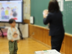 道徳の校内研究会が1年松組で行われました。主人公が学校帰りに友達の家で飼っている犬を見たくて寄り道をしてしまい、先生や母に心配をかけてしまうお話でした。学校や家庭でのきまりや規則の大切さを知り、きまりや規則を守ろうとする心情を育てるねらいで行われました。自ら手を挙げて自分の考えをみんなにわかってもらおうと頑張る姿がたくさん見られました。