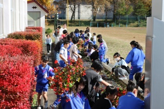 | 2025年11月5日(水) 『秋晴れのもとで』(縦割り班花壇片付け) | ||